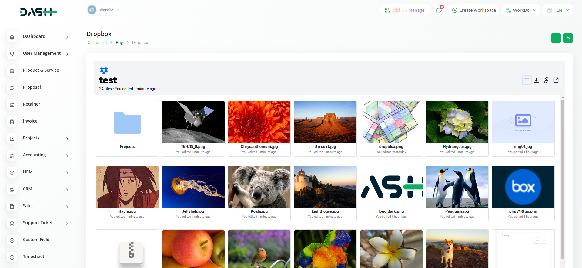 Introducing the Dropbox Module Grid View – a dynamic visual hub where your files and images come to life. With seamless integration between Workdo-dash and Dropbox, this innovative feature showcases your documents in a stunning grid layout. Effortlessly browse through your Dropbox files and images right from within our platform, providing an immersive and intuitive experience. Say goodbye to clutter and confusion – our grid view offers clarity at a glance, allowing you to easily locate and access the files that matter most.