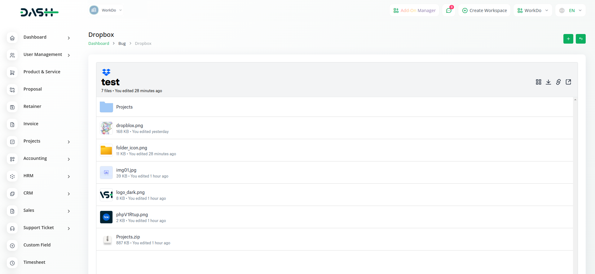 Streamline your tasks and boost productivity by seamlessly integrating Dropbox into Workdo-dash. Save your Dropbox credentials , choose submodules to enable, and enjoy direct access to your documents and files. Say goodbye to unnecessary app switching and cumbersome downloads – effortlessly edit and view various file types right within the Workdo-dash interface.